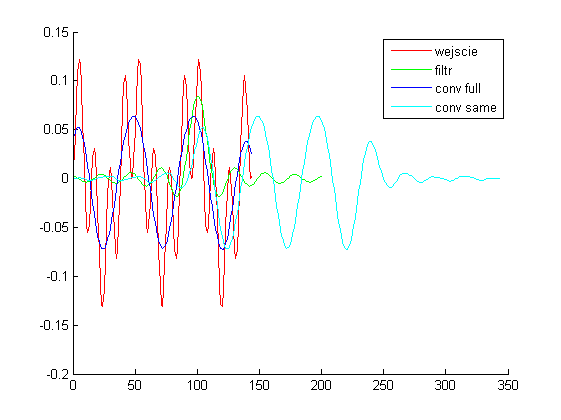 Pole powierzchni filtra to 1, czyli dokonując z nim splotu nie zmieniamy energii sygnału.